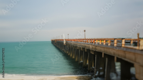 © AC, Fototapeta premium Blurred wooden pier extending into the sea