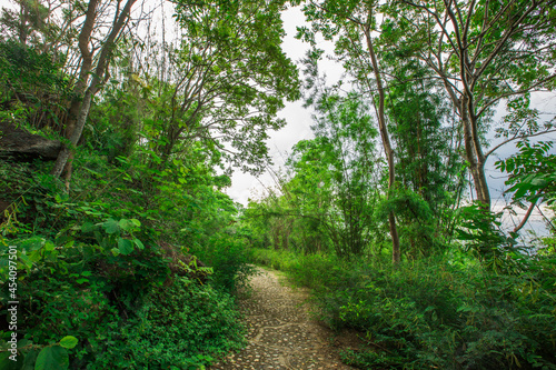 © bangprik, Fototapeta premium blurry abstract background of colorful meadows, a walkway to see the scenery, with a cool breeze blowing through while traveling
