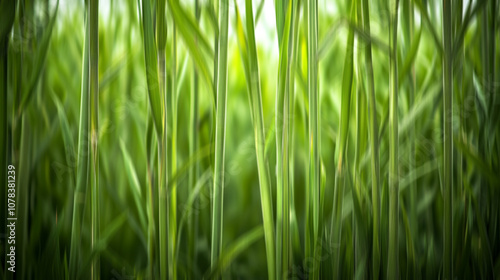 © Maria Marganingsih, Naklejka premium Blurry background of young sugarcane plant. Green grass texture pattern. Green backgrounds.