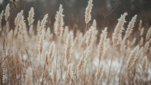 Fototapeta premium Blurry bokeh background showcasing delicate pampas grass and dry reeds in a...