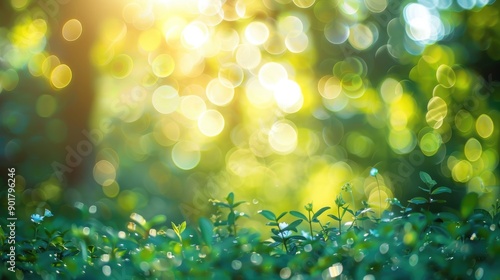Obraz premium Blurry bokeh on green nature backdrop