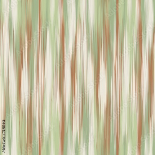 © Jehming, Obraz premium Blurry Earth-Toned Ikat Texture with Green, Brown, and Beige Vertical Stripes