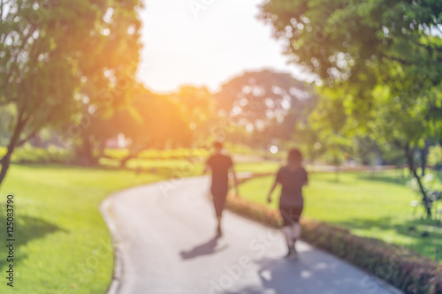 © jack-sooksan, Fototapeta premium Blurry focus scene of people in public park