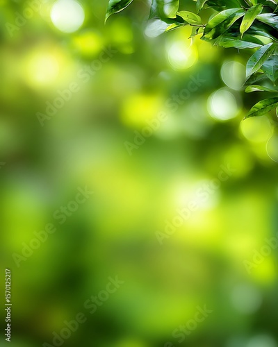© Katerina, Fototapeta premium Blurry green nature background with leafy tree rim framing the view.