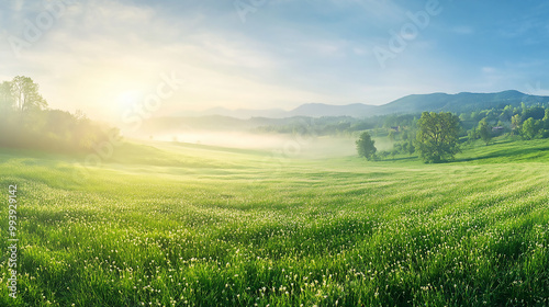 © AVADA, Fototapeta premium Blurry landscape background, generative ai green field in summer landscape with sunlight.
