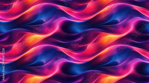 © NeuralNiche, Obraz premium Blurry neon gradient glitch abstract texture in a seamless wavy design perfect for digital textiles and modern art backgrounds