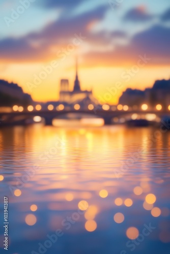 Naklejka premium Blurry Paris sunset with river reflections