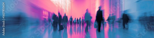 © farhan, Obraz premium Blurry people in a brightly lit hall