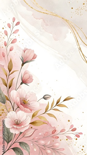 © Art by ChannaronG, Fototapeta premium Blush & Champagne Painterly Strokes on Off-White. Delicate painterly blush and champagne strokes on off-white—clean, elegant poster background for beauty branding.