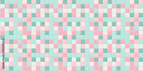 Fototapeta premium Blush pink and light teal tiles background, clean and flat surface texture,...