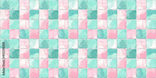 © Coppi AI, Fototapeta premium Blush pink and light teal tiles background, clean surface texture, white background