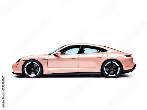 © Yothin, Obraz premium Blush Pink Electric Car Side Profile on White Background