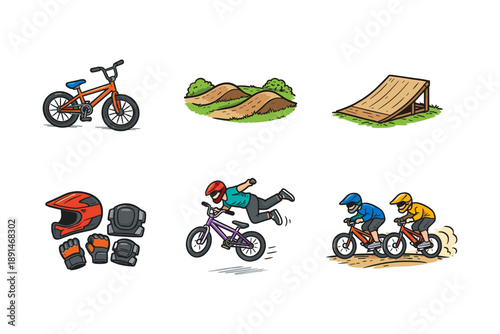 Fototapeta premium Bmx adventure set featuring equipment, tricks, and races for enthusiasts