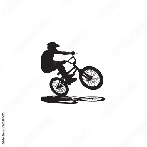 © Bening, Obraz premium BMX bike player vector illustration for icon, symbol or logo. BMX bike player template logo. BMX player silhouette. bmx bike