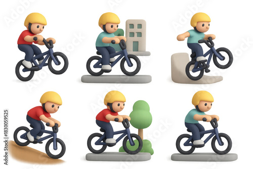 © Maureen, Fototapeta premium Bmx cycling icon set with cartoon characters for design and decoration
