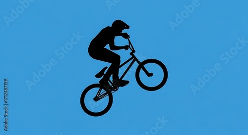 © Kholil, Fototapeta premium BMX Rider Silhouette Performing a Wheelie Stunt.