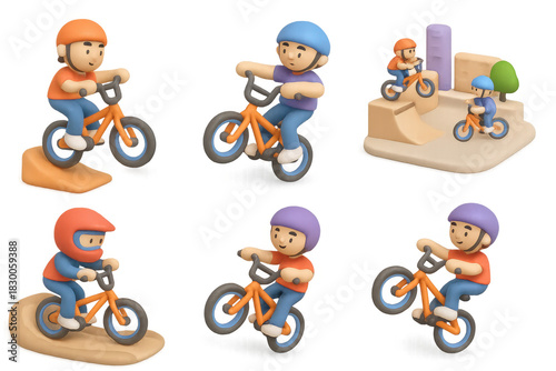 © Maureen, Fototapeta premium Bmx stunt icons collection featuring cyclists, ramps, and urban elements for graphic design projects