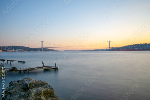 Naklejka premium Boğaz köprüsü Istanbul Bosphorus Bridge at night. 15th July Martyrs Bridge....