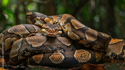 © Sasint, Obraz premium Boa constrictor wrapping around its prey for a suffocating embrace
