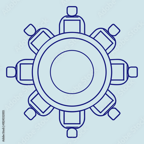 Fototapeta premium Boardroom Blueprint: An illustration shows an overhead view of a conference table with chairs, representing collaboration and decision-making within an organization.