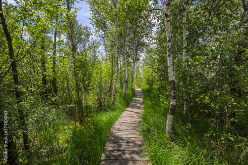 Fototapeta premium Boardwalk in the nature reserve Ibmer Moor, at Ibm