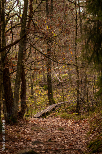 Fototapeta premium Boardwalk over a soggy part of a forest.