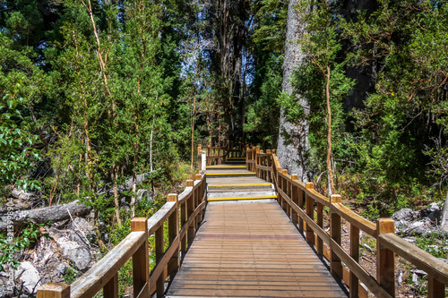 Obraz premium Boardwalk path at Arrayanes National Park - Villa La Angostura, Patagonia,...