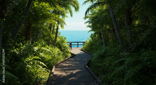 © Lydia, Obraz premium Boardwalk path through tropical forest