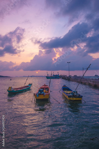© Nattawut, Fototapeta premium boat at sunset