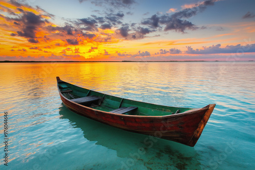 © sharafmaksumov, Fototapeta premium Boat At Sunset