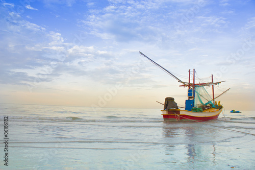 Fototapeta premium boat at the beach hua hin, thailand