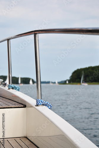 © Joanna SM, Obraz premium Boat deck, sailing on lake