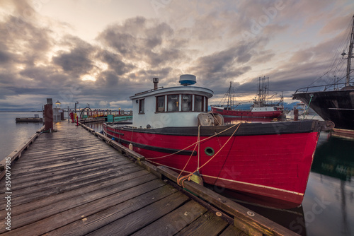 Obraz premium Boat docked at Comox harbor on Vancouver Island, British Columbia, Canada.