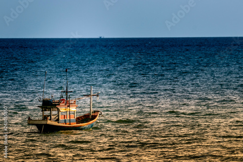Fototapeta premium Boat float on the beach during summer day