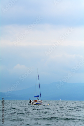 Fototapeta premium Boat in a lake in a cloudy day
