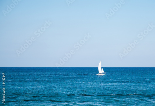 © zest_marina, Obraz premium Boat in blue sea