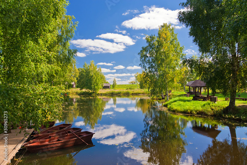 © Ryzhkov Oleksandr, Obraz premium Boat in lake.