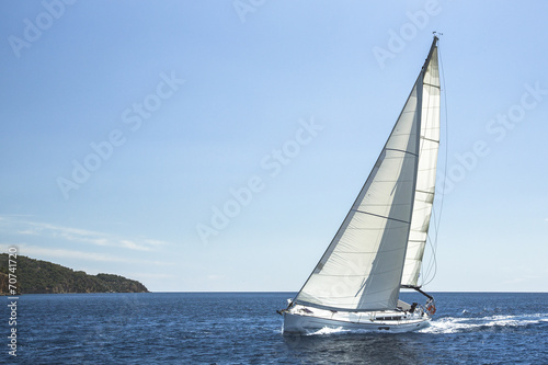 Obraz premium Boat in sailing regatta. Luxury yachts at Sea.