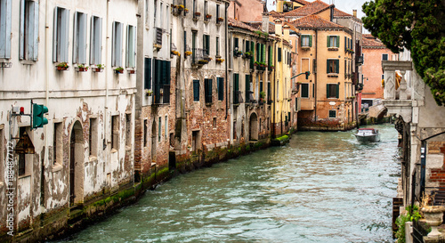 © tan4ikk, Naklejka premium Boat Is Floating Down Old Canal