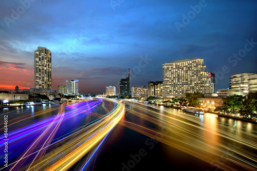 © leisuretime70, Fototapeta premium boat light trails on the river