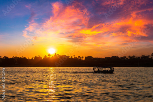 Naklejka premium Boat on Nile at sunset