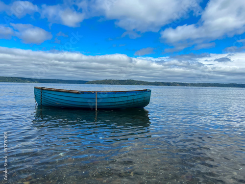 © Shawn, Naklejka premium boat on the beach with blue sky