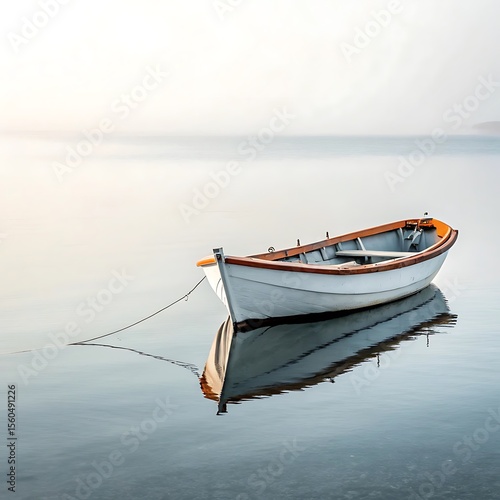 © jannatul, Fototapeta premium boat on the sea floating peacefully