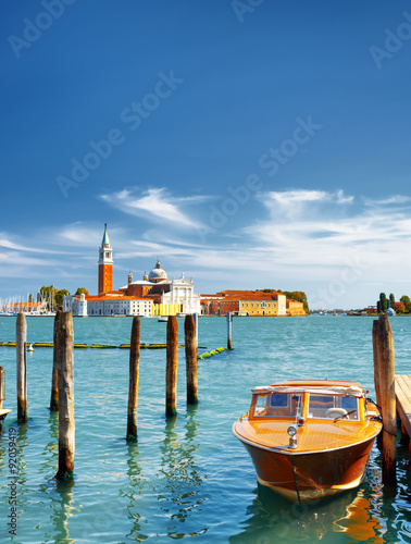 © efired, Fototapeta premium Boat parked beside the Riva degli Schiavoni in Venice, Italy