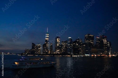 © Bryan S, Fototapeta premium Boat parties in the Hudson River next to the New York skyline at night