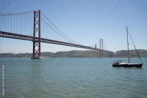 © G, Naklejka premium Boat passing under an iconic iron bridge
