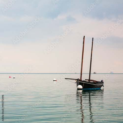 © Willy Mobilo, Naklejka premium Boat reflecting over calm sea