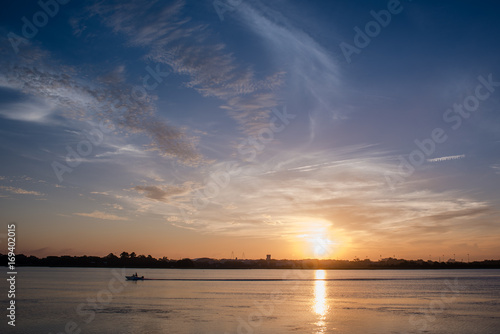 © Abigail Marie, Naklejka premium Boat riding up the River