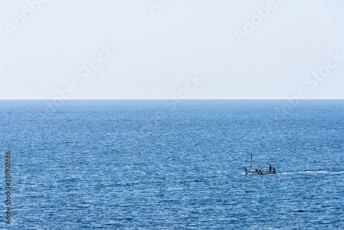 Fototapeta premium Boat sailing in the Mediterranean Sea in Catalonia, Spain