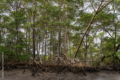 Naklejka premium Boat trip on the Preguica River from Tutoia, Delta das Americas to Ilha das Canarias, Brazil. South America